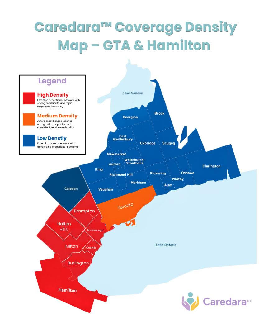 Caredara™ builds and maintains practitioner availability within each region — creating a standby care network that’s ready to respond when moments arise.
